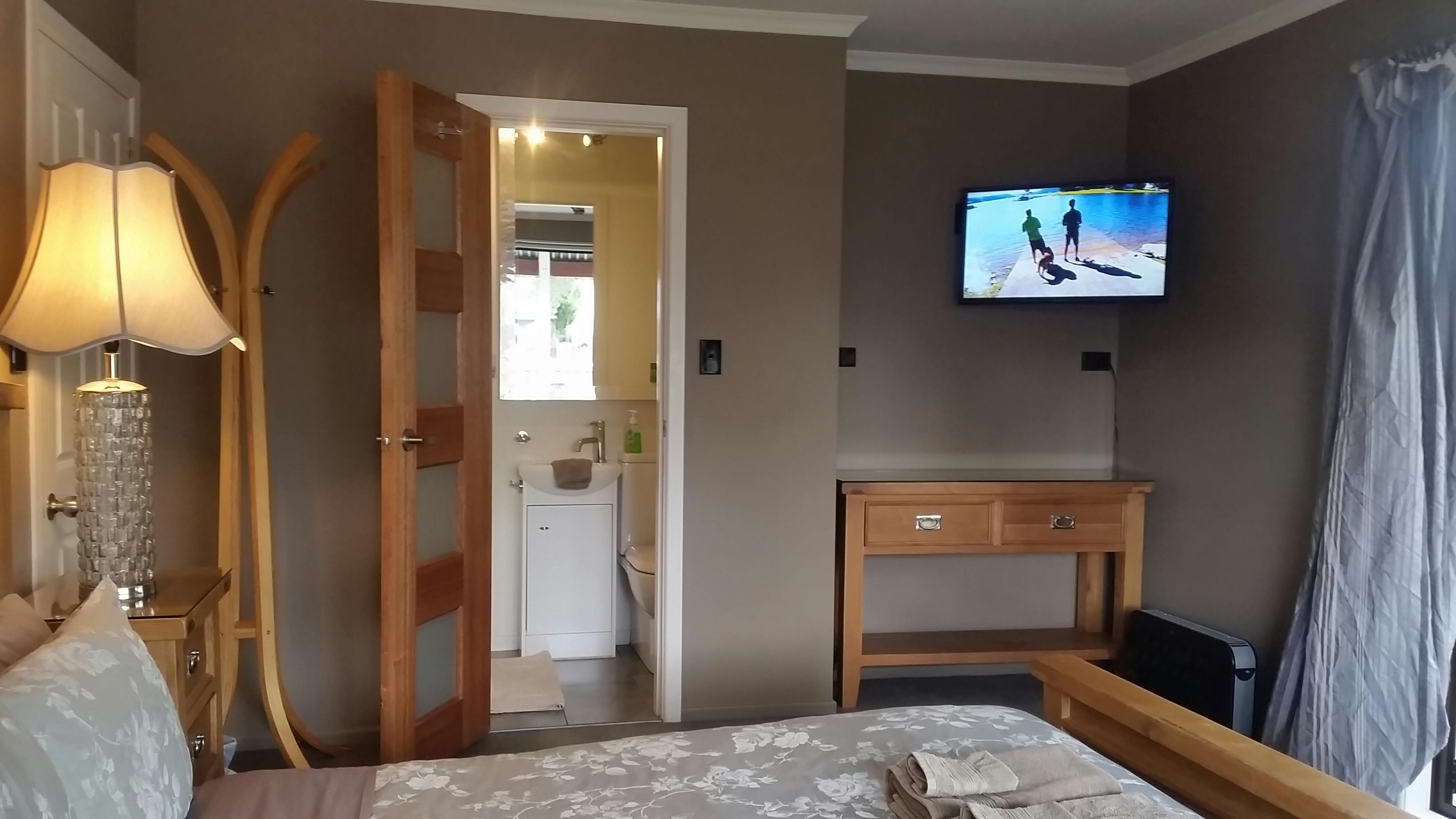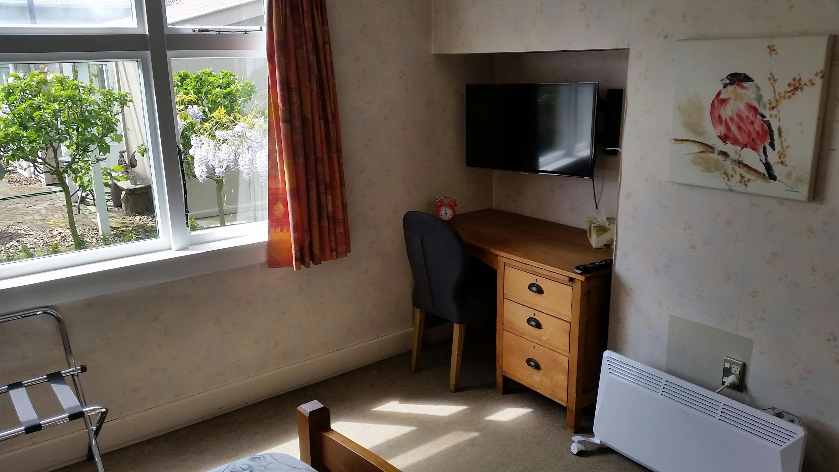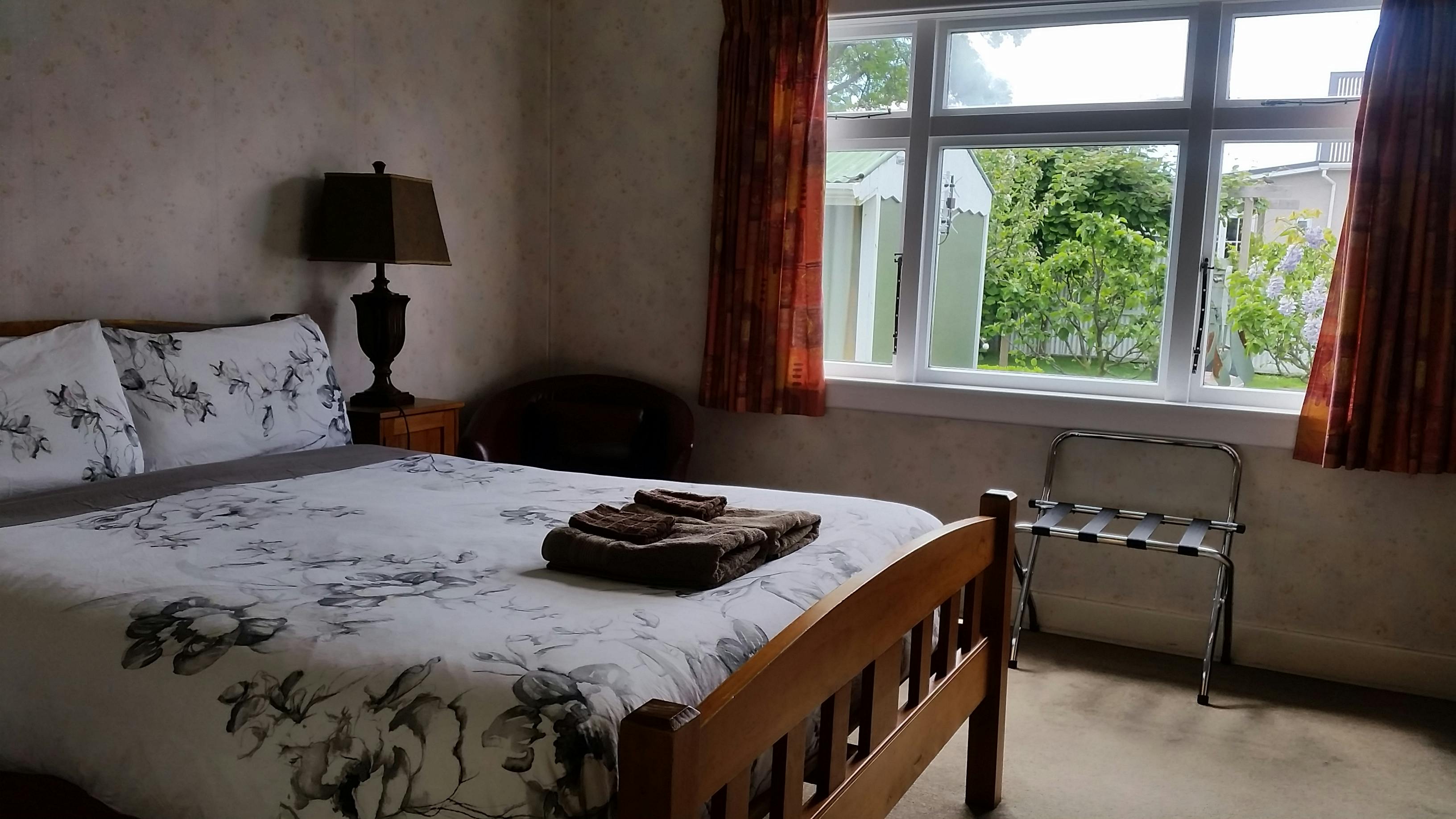 This delightful, tastefully decorated, large room with a garden view has the convenience of having a modern private bathroom. This cozy room also includes your own TV, safe, queen sized bed (with electric blanket), quality bedding and heating. Also included is a club chair and writing desk so that you can chill out, relax or maybe catch up on some work in your own private space.